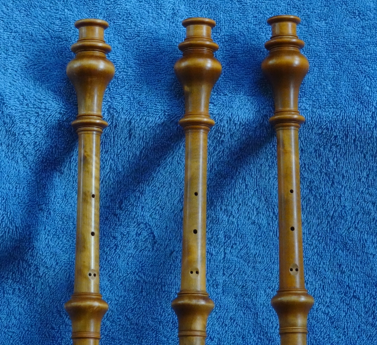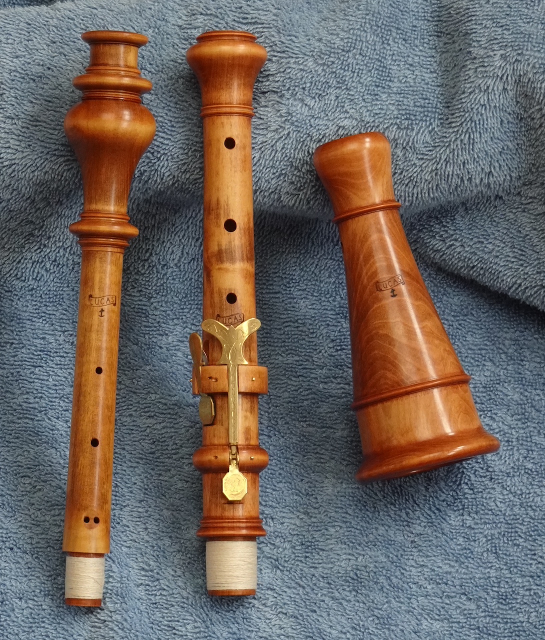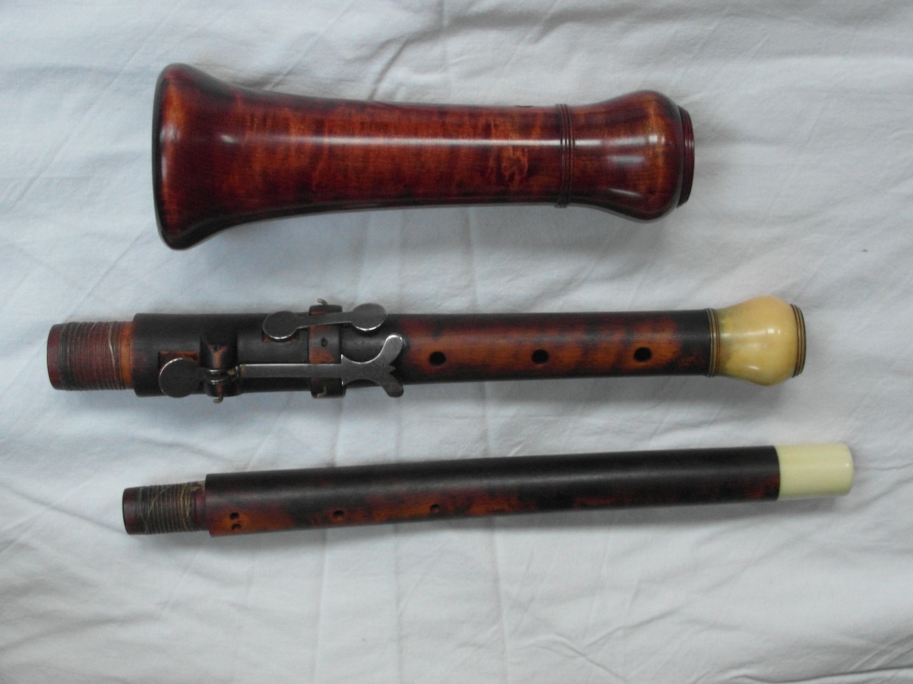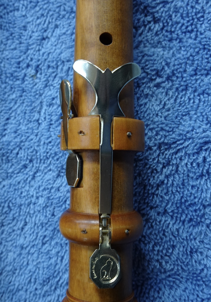Bij dezelfde diefstal was van een andere hobo juist het bovenstuk gestolen. Dat bovenstuk (en wel: alléén dat bovenstuk) was van de bouwer Jakob Friedrich Grundmann. Toen mijn vriend later een hobo van die bouwer kocht, waarvan nu juist het bovenstuk ontbrak, heb ik aan de hand van de meetgegevens van het eerder gestolen bovenstuk een nieuw bovenstuk kunnen maken. (Links.) Dat gelukkig goed bleek te functioneren. Ook ontbrak er een klein klepje voor de linker pink, een g#-klep.