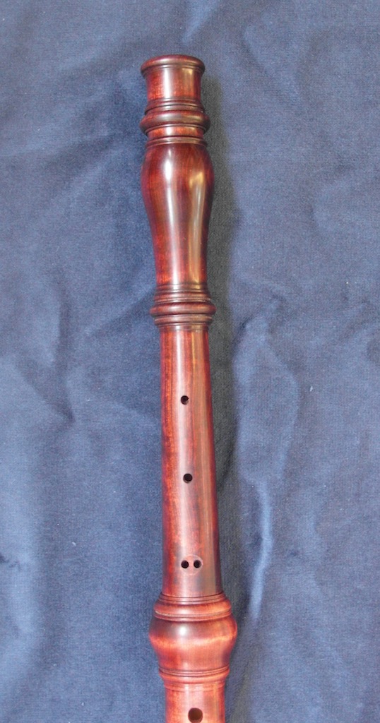 De f#' (eerste register) stemt met de originele greep (123/4..Eb) goed, terwijl de f' goed aanspreekt. (Ik vermoed dat hier de grote wanddikte een positieve bijdrage aan levert.)