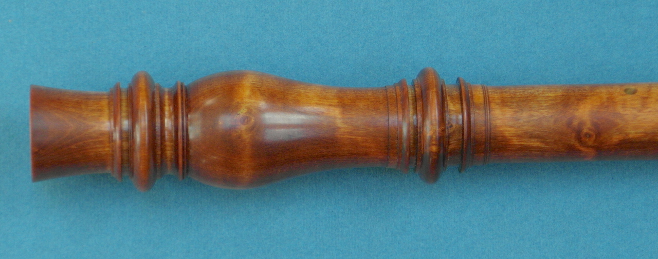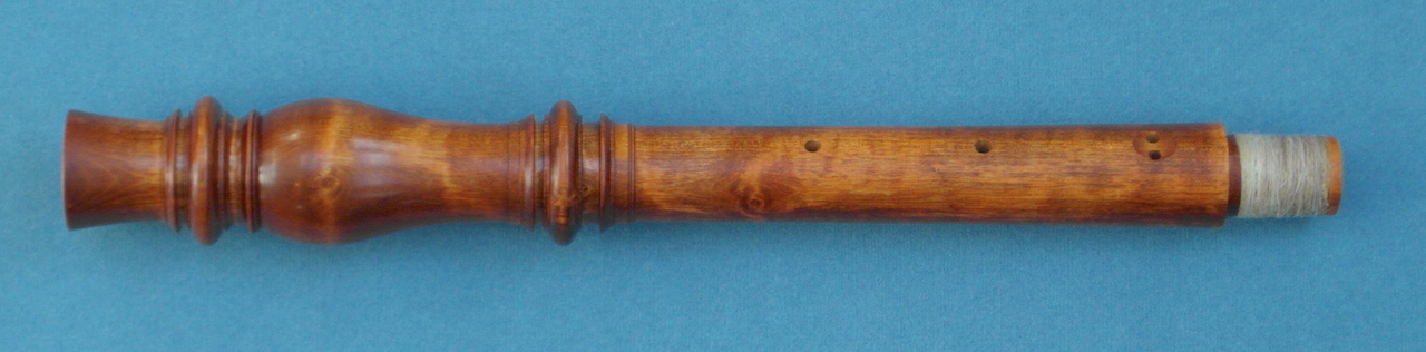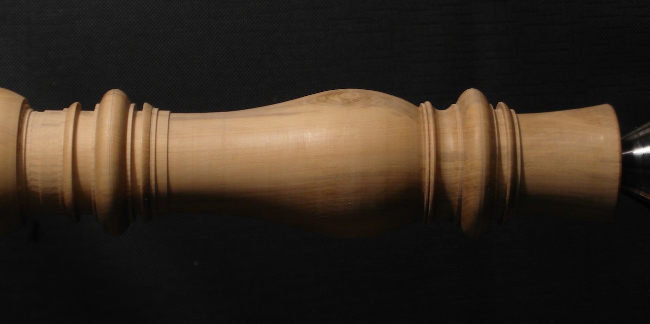 Ik heb de indruk dat deze bouwer heel secuur wist wat hij akoestisch deed. Zo heb ik flink geëxperimenteerd met de boring van de beker, teneinde het instrument in balans te krijgen, en kwam ik bij die experimenten vrij secuur uit op de maten die ik van Eichentopf al kende.