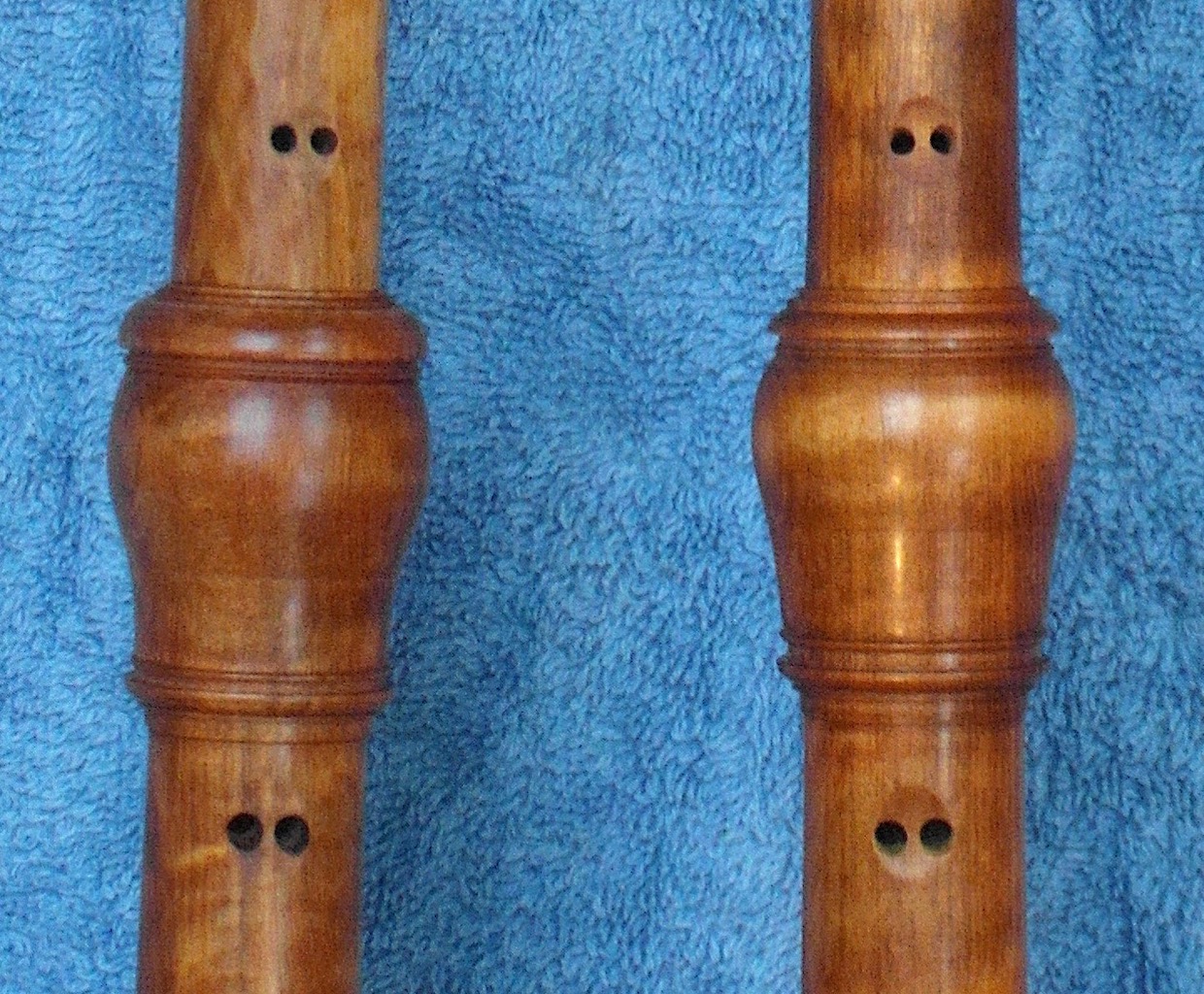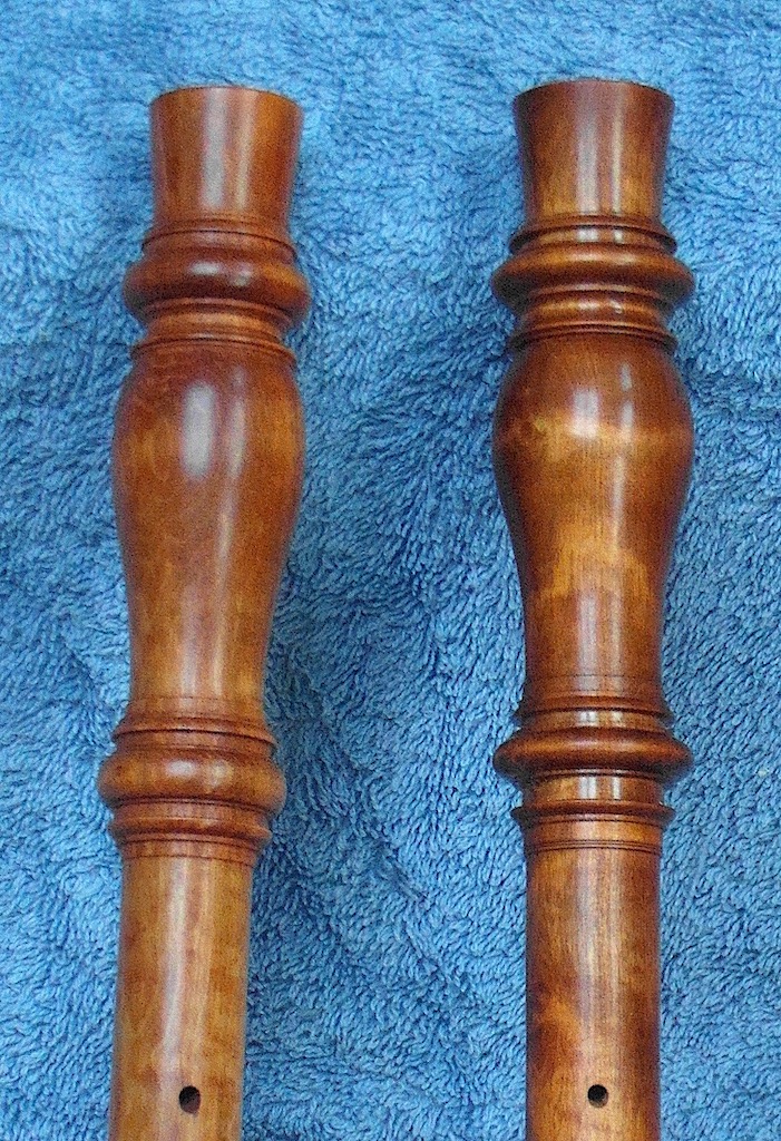 Uiterlijk vind ik echter zijn instrumenten niet zo heel erg mooi -ik moet daar meteen bij zeggen, dat ik niet veel gezien heb- en daarom neem ik de vrijheid, om mijn copieën iets eleganter te maken, voornamelijk door er een paar kleine aspecten van veel Nederlandse hobo's in te verwerken. (Ik kan het niet laten.) Op de foto's 15 en 16 kunt u de verschillen zien.