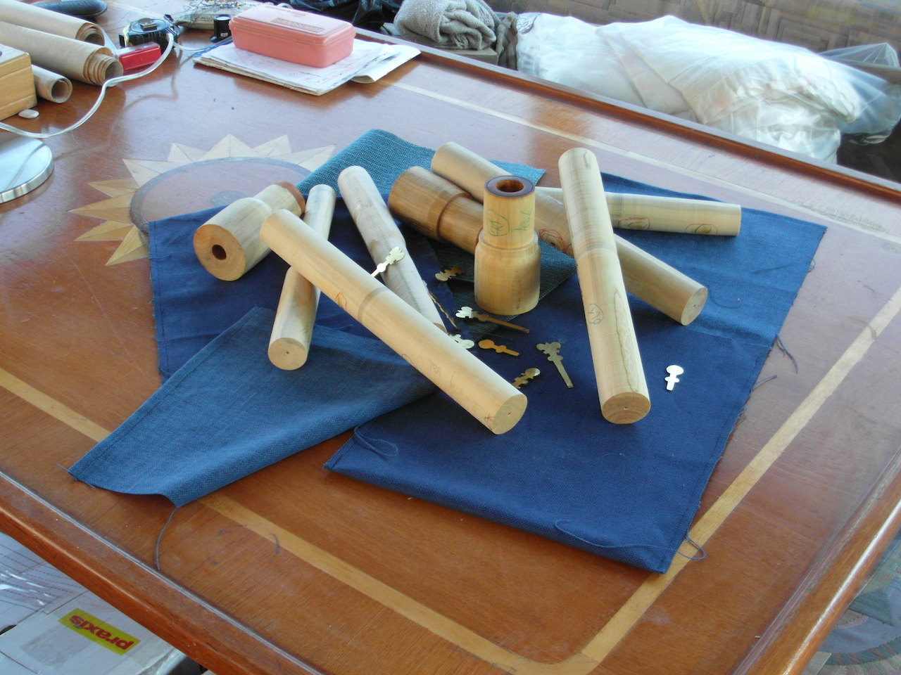 Drie verschillende oboi d'amore heb ik van Eichentopf gecopieerd: een origineel in een museum in Venetië, een in Stockholm en een in Brussel. Dat laatste instrument beviel me, in copie, het best, en dat is de oboe d'amore die ik nu vaker copieer. (Helaas weet ik niet zeker of de kleine verschillen aan mijn werk, aan de metingen, of aan de originelen toe te schrijven waren.)