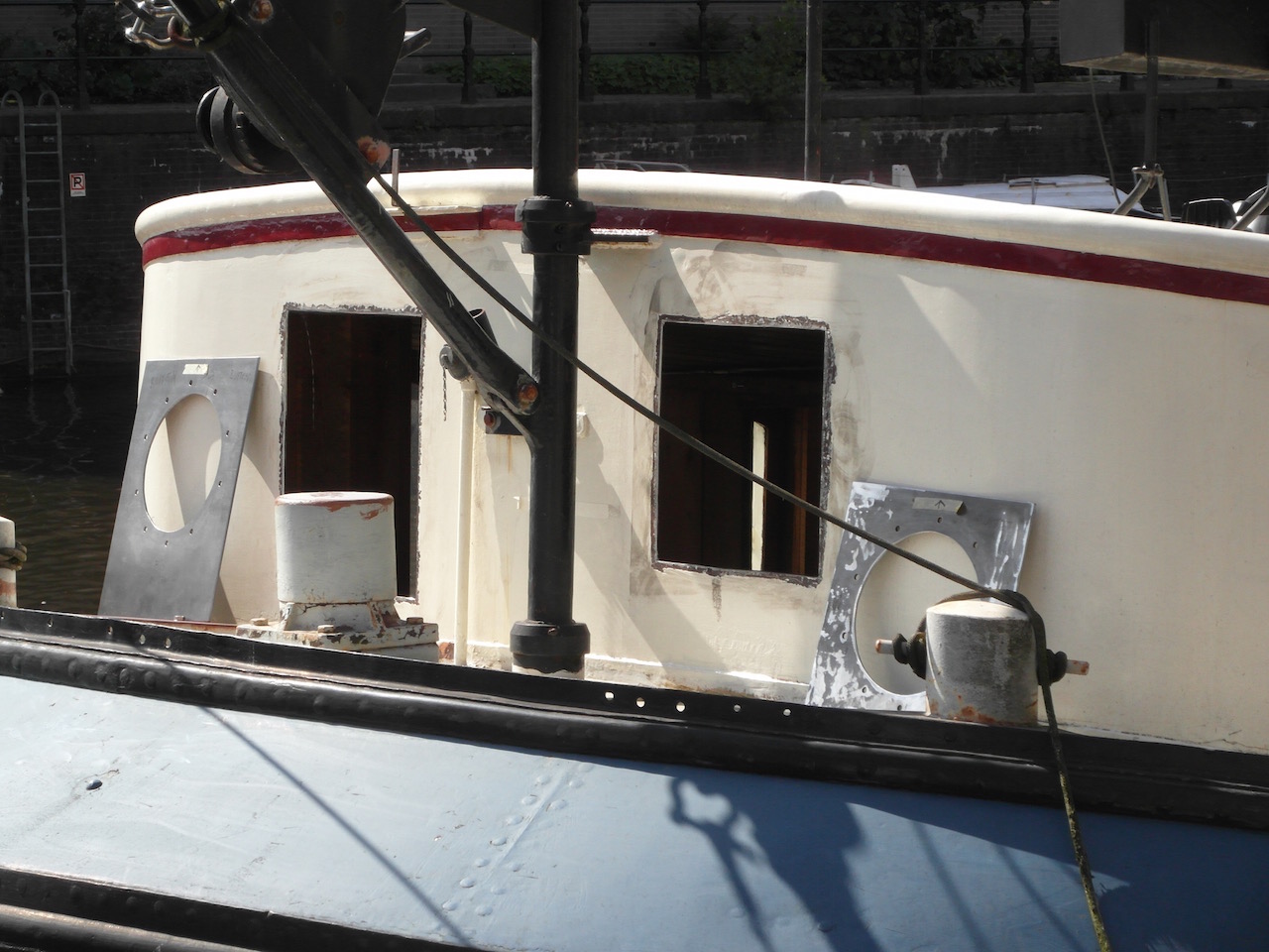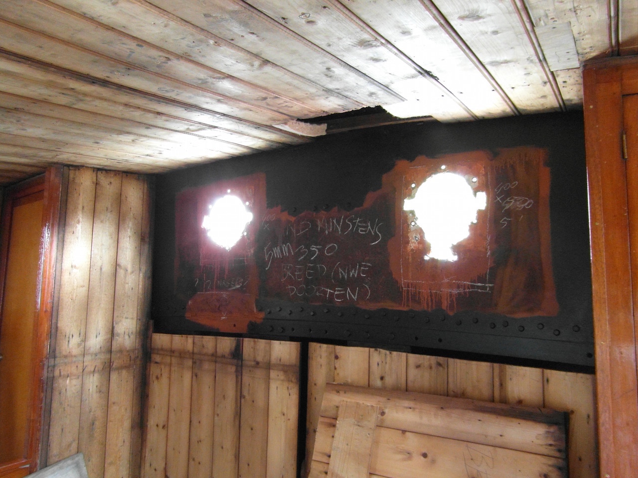 Ik heb dat jaren zo gelaten, totdat ik om een andere reden de betimmering van de roef moest demonteren. Ik kon er daardoor opeens heel goed bij; dit was dan ook het uitgelezen moment voor vervanging. Niet alleen van de patrijspoorten maar ook van een deel van het staal.
