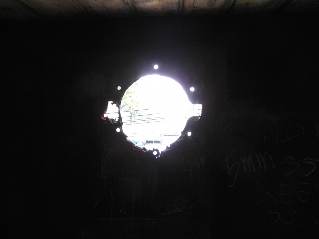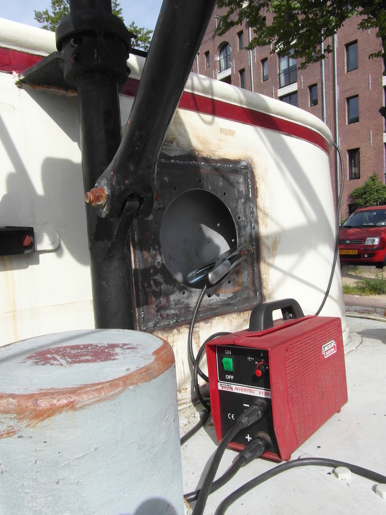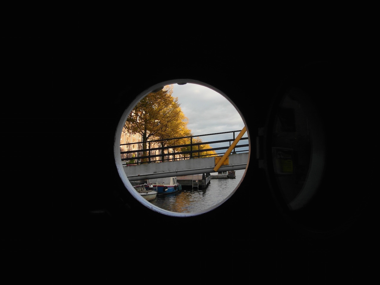 In de achterwand van de roef, het achteronder, van het goede schip Spes, waar ik op woon, zaten twee patrijspoorten, die toen ik hier kwam wonen al geheel kapot waren. Er was iets ontzet, waardoor ze gebarsten waren, en waardoor de omliggende stalen wand flink dóórgeroest was.