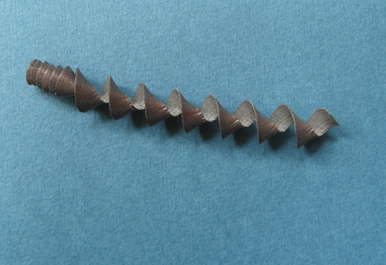 Vooral bij draaien en boren kunnen heel mooie krullen onstaan. En ook bij het ruimen van een boring: het wijder maken van de inwendige holte in een blaasinstrument.