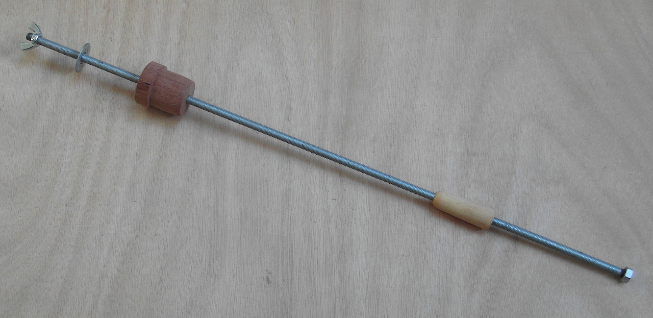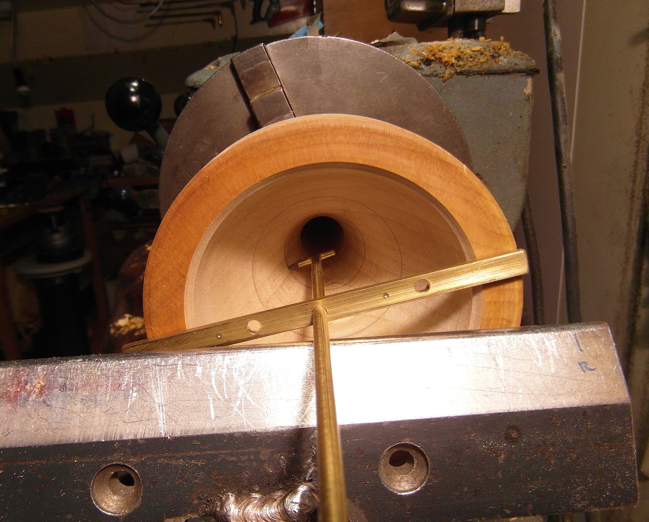 Ik moest nadat mijn draaibank haar intrede aan boord had gedaan dus eerst een leunspaan maken. Handig daarbij was, dat ik mijn draaibank al had staan; die was voor de vervaardiging heel nuttig! (Je kunt er ook heel goed strakke vlakken op draaien.)
